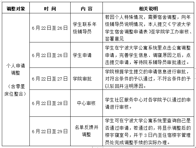 为了认真做好我校2022年寝室调整工作,根据《抖阴 学生宿舍管理办法》(宁大政字〔2007〕104号)和《学生社区宿舍调配、调整管理办法》,为使寝室管理规范化、常态化,现将本学年末寝室调整相关安排通知如下,原则上学年中不受理。