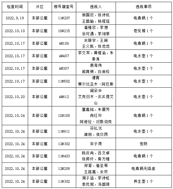学校在9、10月文明寝室日常检查时,排查出我院13间寝室有违禁电器情况,根据《抖阴