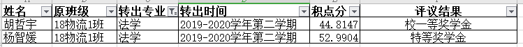 根据2019-2020学年本科学生奖学金评定工作,依据《抖阴 本科学生奖学金评定办法》(宁大政〔2018〕84号)的相关规定,在2019-2020学年中转专业学生是回原学院进行奖学金评定,现将部分转专业学生拟获奖学金名单予以公示: