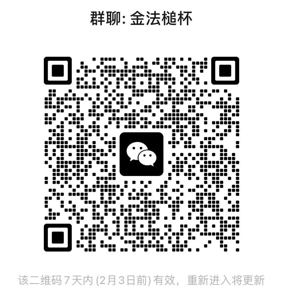 3.有意向报名的同学于2月18日中午12:00前将报名表(“姓名+报名表”命名)和案例分析(“姓名+案例分析”命名)打包(“姓名+金法槌”命名)至邮箱([email protected]),逾期不予受理。