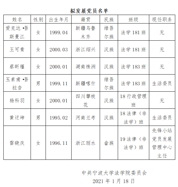 根据学校党委规定,决定将拟发展为中共预备党员的7名同志予以公示,公开征求意见。现就有关事项通告如下: