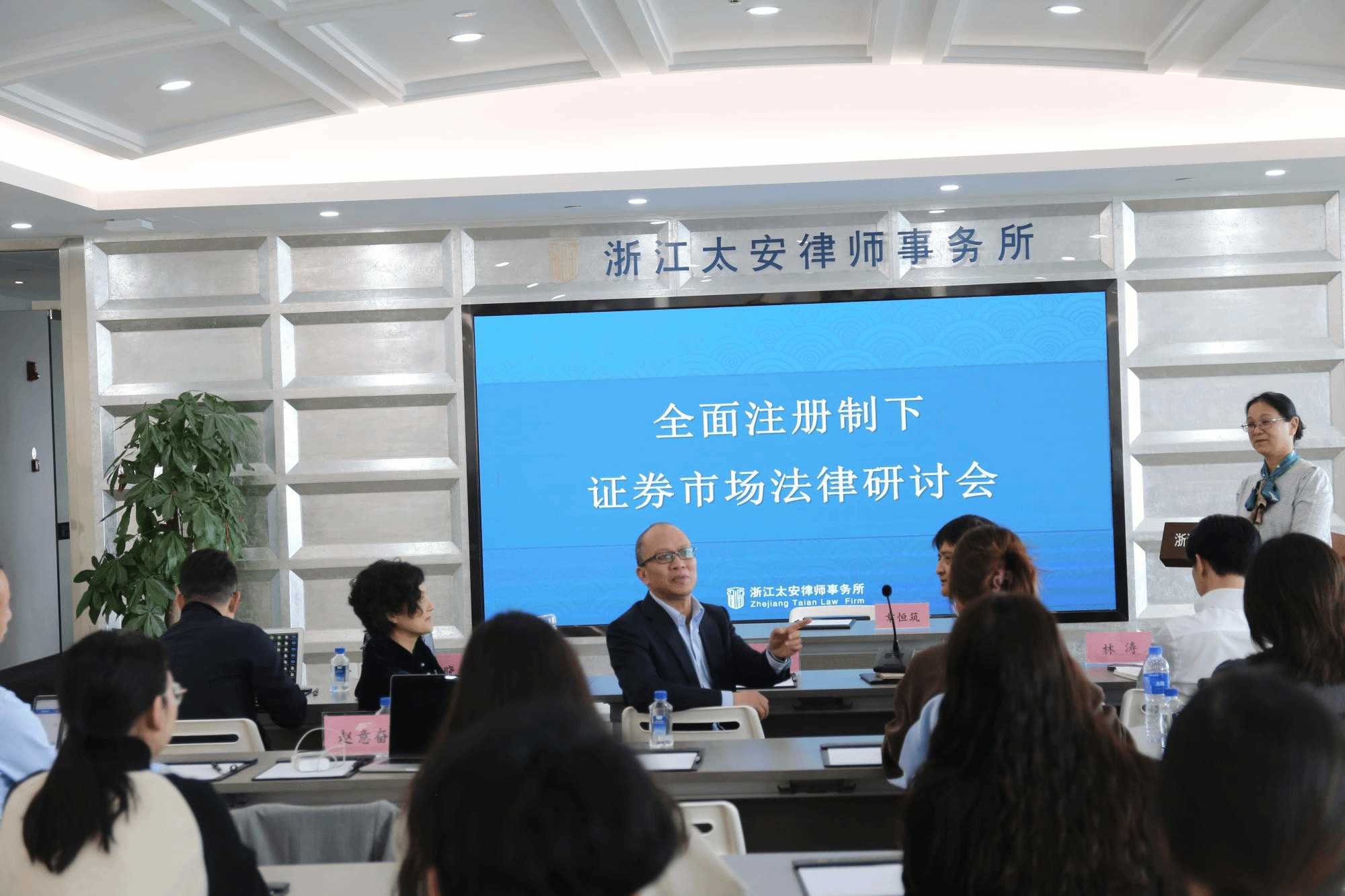 -浙江太安律师事务所金融法律研究中心在浙江太安律师事务所召开了全面注册制下的证券市场监管制度研讨会。
