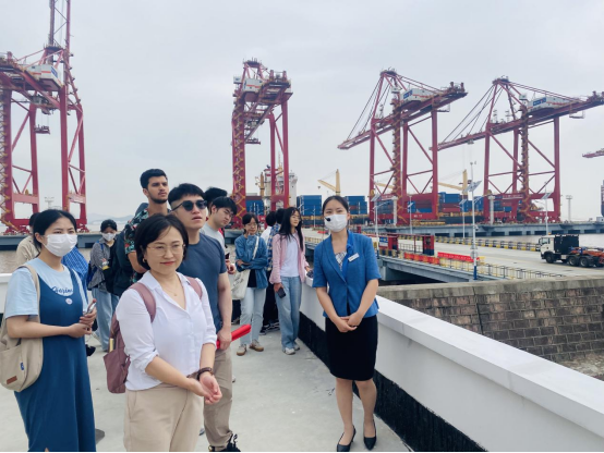 6月7日下午,我院教师王婷婷、辅导员戴丽莉带领“海洋法”班的本科生、留学生,“海洋环境保护法专题研究”班的研究生参访了舟山甬舟集装箱码头有限公司。