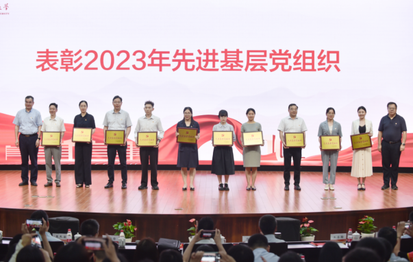 我院荣获“2023年先进基层党组织”荣誉,党委书记孙芬娜(左三)上台领奖