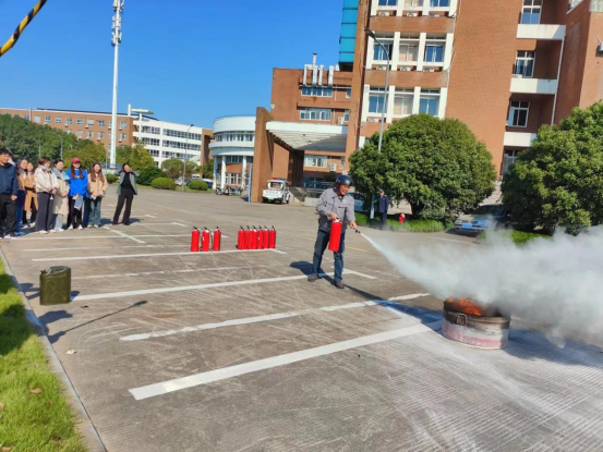 随后,大家来到空旷广场进行灭火实战。同学和老师们各个摩拳擦掌,跃跃欲试,按照操作流程对准火焰准确喷射,加强了使用灭火器材的实践技能,增强了火场应对的信心。