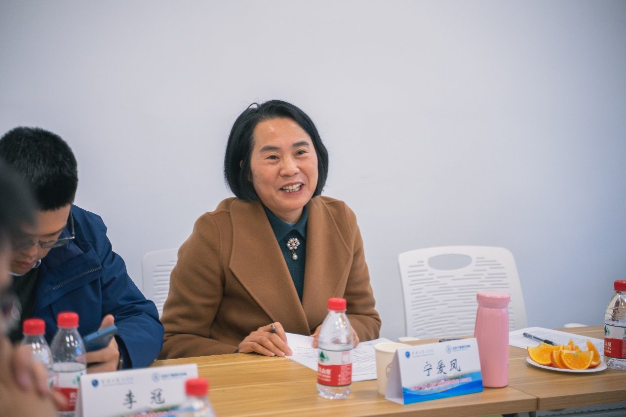 宁爱凤副教授对上述两篇论文进行了评议。宁爱凤老师对两位的选题的实践性进行了肯定,指出论文做到了研究结合时代、研究结论反映时代特征。随后,针对李梦菲同学的论文,宁爱凤老师评议道:李梦菲同学从宏观角度对我国共同富裕的理论内涵、历史演进与实践路径进行探究,论述过大,可以结合共同富裕的优秀案例进行分析。