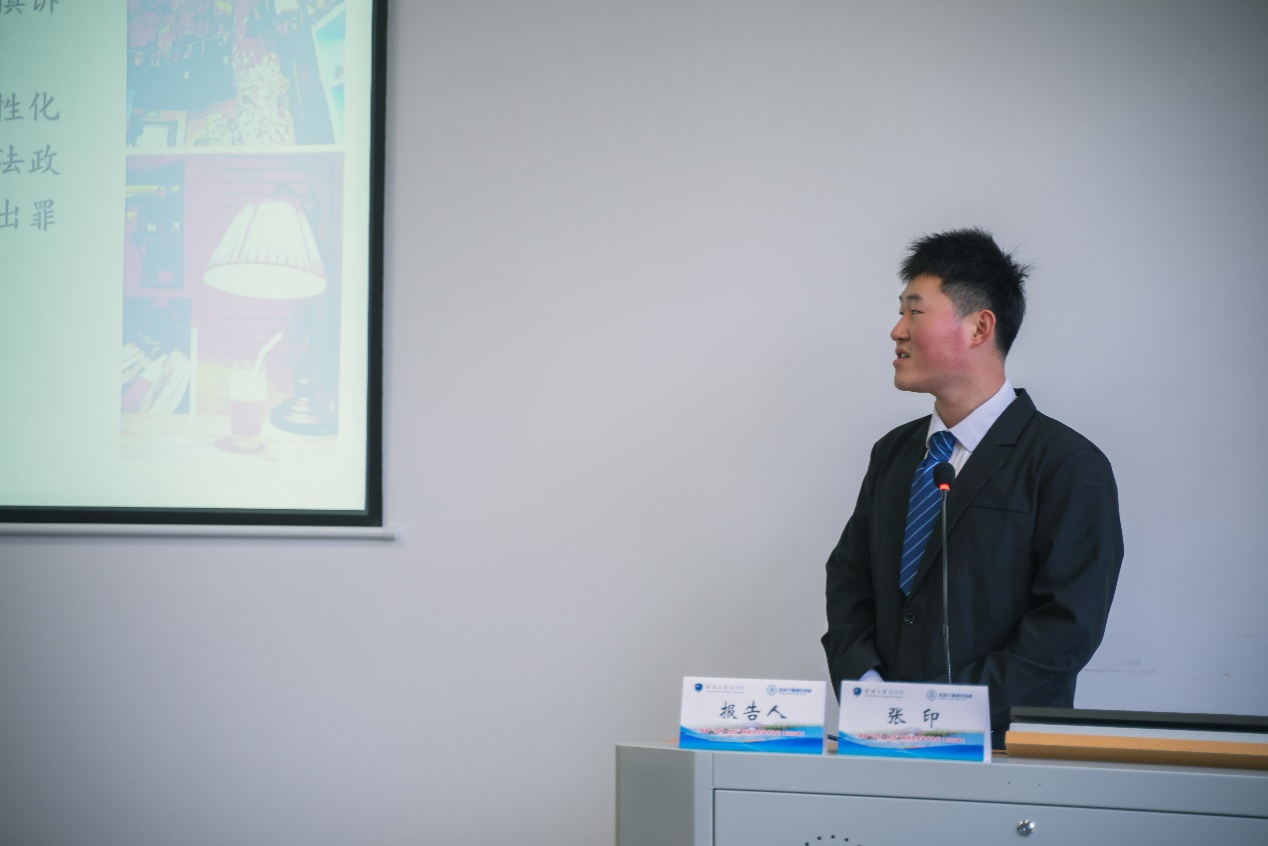 硕士生张闻喆进行报告。夏众明报告的主题为《实体投资的法治保障——法人权益与自然人权益如何平衡?》,其以实体投资的法治保障为视角,探讨法人权益与自然人权益如何平衡的问题,并提出优先做好法人权益保护,再推动自然人权益保护进程,同时注重生态环境保护的建议。吴宇琪报告的主题为《中国语境下个人破产复权制度:模式选择、理论基点与规范建构》,其认为,当然复权主义利于债务人尽快在经济中重生,但不利于债权人行使监督权保护自己利益的实现;许可复权主义充分考虑到债权人利益的保护,却又带来了司法资源的大量消耗和配套制度缺失问题;混合主义模式更适合我国国情。张闻喆报告的主题为《以人民为中心的传统法治思维——从苏辙<韩非论>与<龙川略志>中研究》,其认为研究《韩非论》与《龙川略志》对深入体察苏辙法治观点,研究其为代表的北宋学者官僚的以人民为中心的传统法治思维有推进作用。