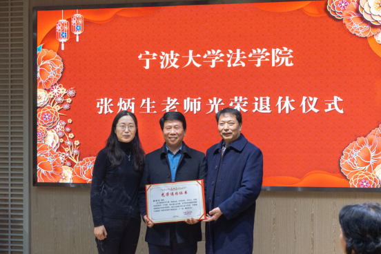 仪式上,孙芬娜书记为张炳生老师颁发了荣休证书;梁开银院长为张炳生老师送去了荣休纪念礼物;青年教师代表乔宜梦为张炳生老师送上代表祝福的鲜花。