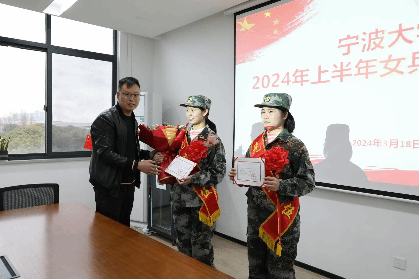 2024年上半年女兵入伍欢送会在锦绣学生活动中心402举行。此次共有2名宁大学子光荣入伍,其中包括我院2022级法学专业学生张怡嘉。
