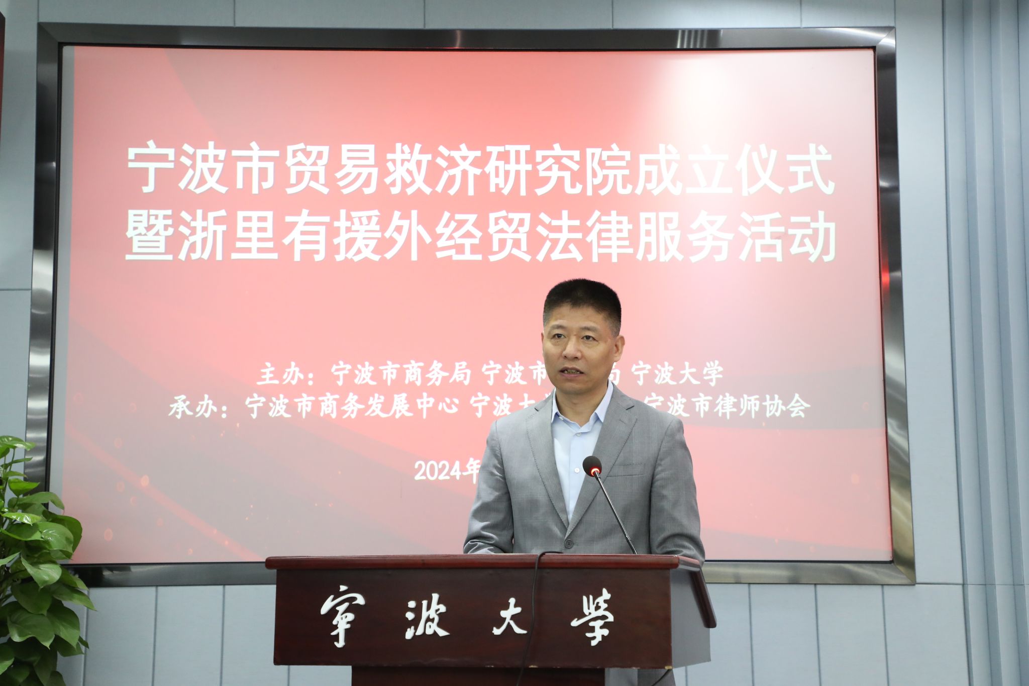 院长梁开银教授主持了宁波市贸易救济研究院揭牌仪式、宁波市贸易救济专家咨询委首批专家委员和宁波市贸易救济专家律师库首批成员聘书颁发仪式。
