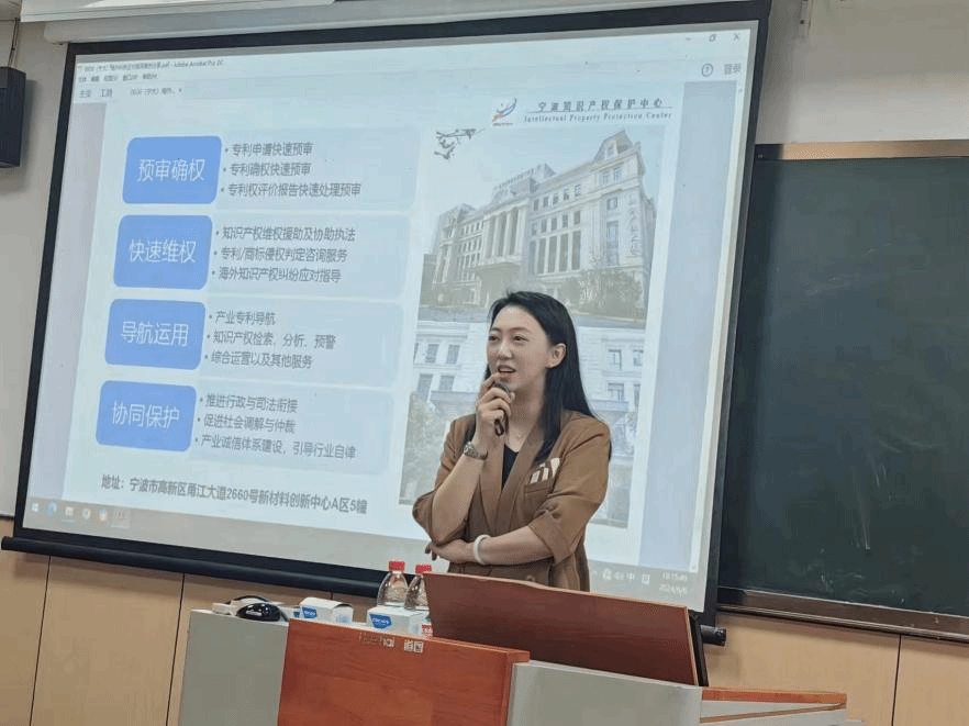 6月6日,中国(宁波)知识产权保护中心海外维权部部长陆晶晶应国际法国际私法课程组和蒋奋教授邀请,走进《国际经济法》课堂,为同学们带来题为“宁波企业海外知识产权纠纷应对指导案例分享”的实务授课。抖阴