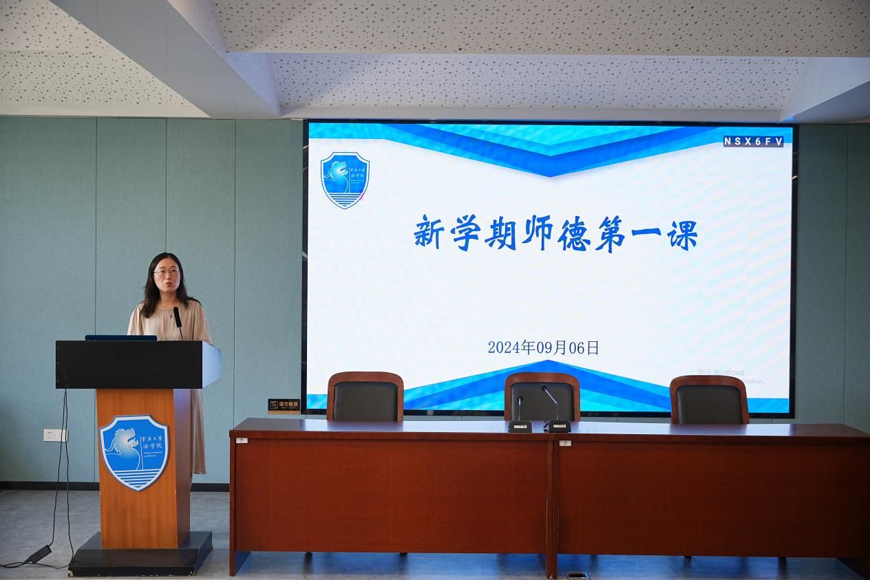 在师德第一课中,学院党委书记孙芬娜传达了党的二十届三中全会、省委十五届五中全会以及学校暑期中层领导干部扩大学习会精神,同时强调了师德师风建设的重要性,通过以案说纪、以案说法、以案说责,号召全体教职工以身作则,展示教师良好精神风貌。