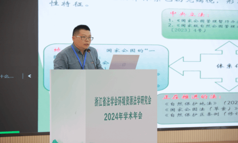 我院张文松博士在会议主旨演讲环节作了“结构与功能:自然保护地立法体系化”的主旨报告。报告提出,我国自然保护地体系建设呈现“政策系统化+立法体系化”的趋势。现行自然保护地法规体系的类型细化形成的立法价值指向模糊、“类型矩阵”导致立法效能的外溢等问题,亟需通过以国家公园为主体的自然保护地体系予以立法转向。自然保护地体系立法应以生态环境法典编纂和单行法的“双法源”形式,在自然、经济和社会的发展中提供生态空间、生活空间和生产空间的功能。
