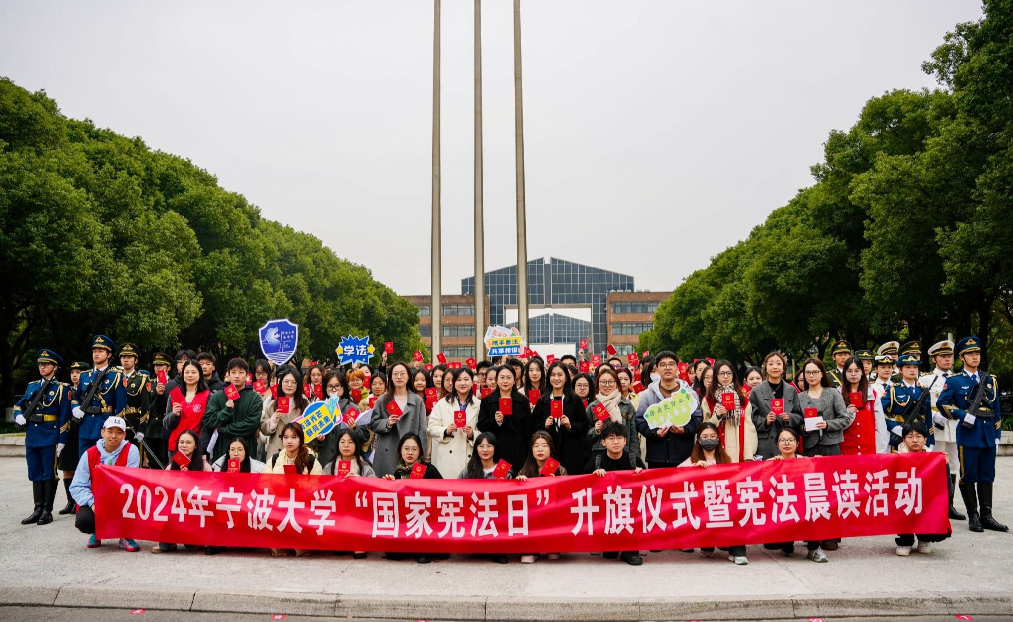 于12月4日早上,在北大门国旗下举行了2024年“国家宪法日”升旗仪式暨“宪法晨读”活动。本次活动由抖阴