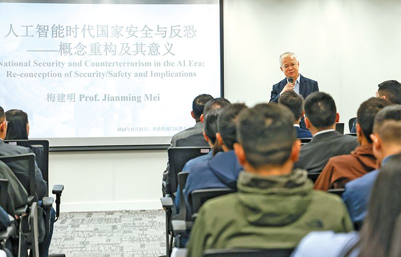 的杰出反恐学者、犯罪学博士生导师梅建明教授,于安全社区中心担任主讲嘉宾,旨在提升香港警务处各级警员的反恐意识,并深化对人工智能在反恐领域应用的理解。