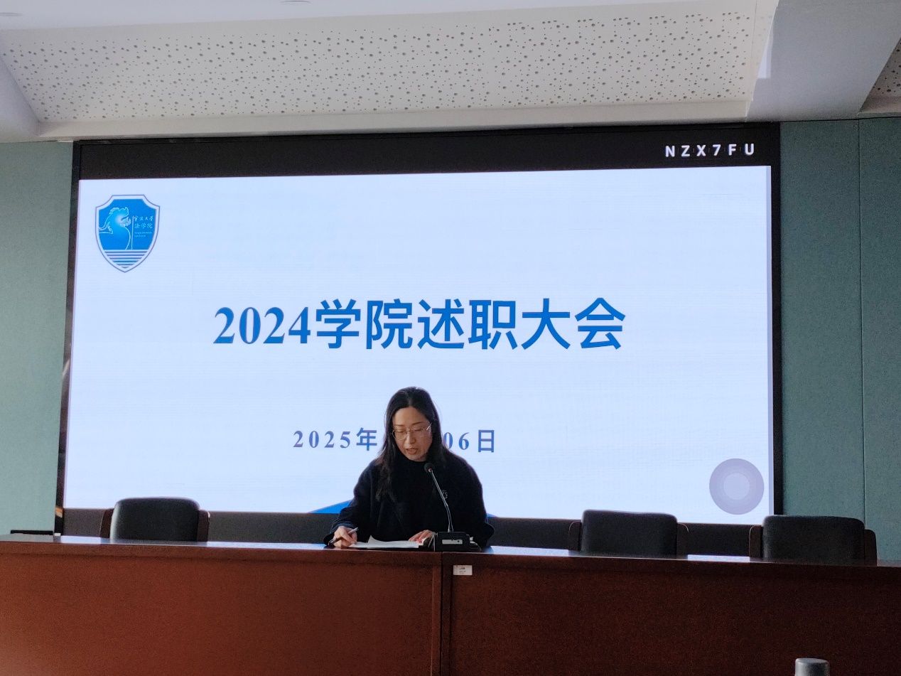 2025年1月6日下午,我院在学院217会议室举行年终述职大会暨学期末最后一次教工大会。会议由院党委书记孙芬娜主持,学院党政领导班子成员及全院教职工参加。