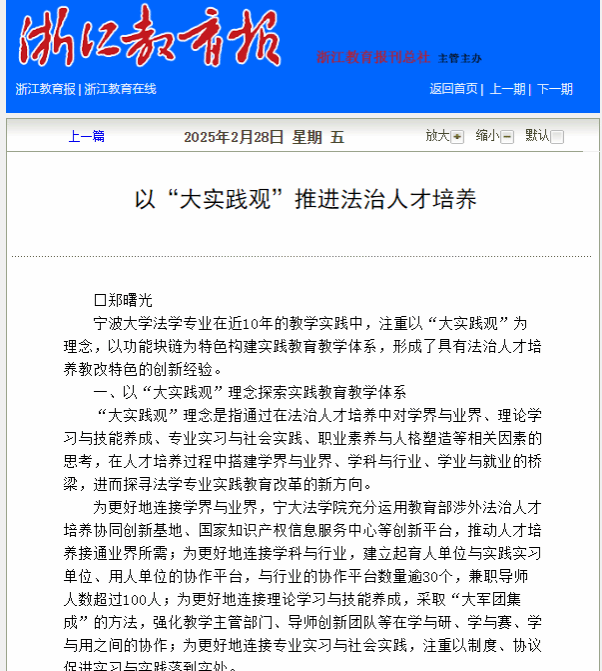 郑曙光教授的《以“大实践观”推进法治人才培养》的文章在浙江教育报显著位置刊发,标志着抖阴