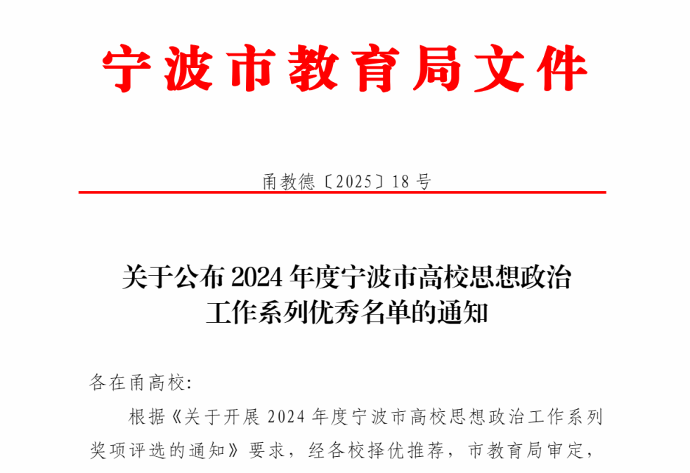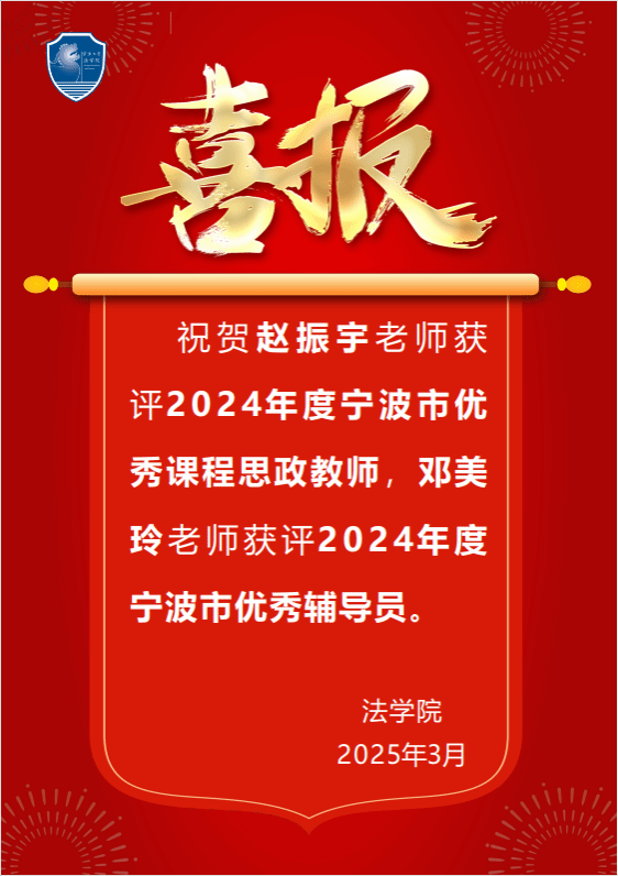 喜报|我院两位老师入选2024年宁波市高校思政工作系列优秀名单
