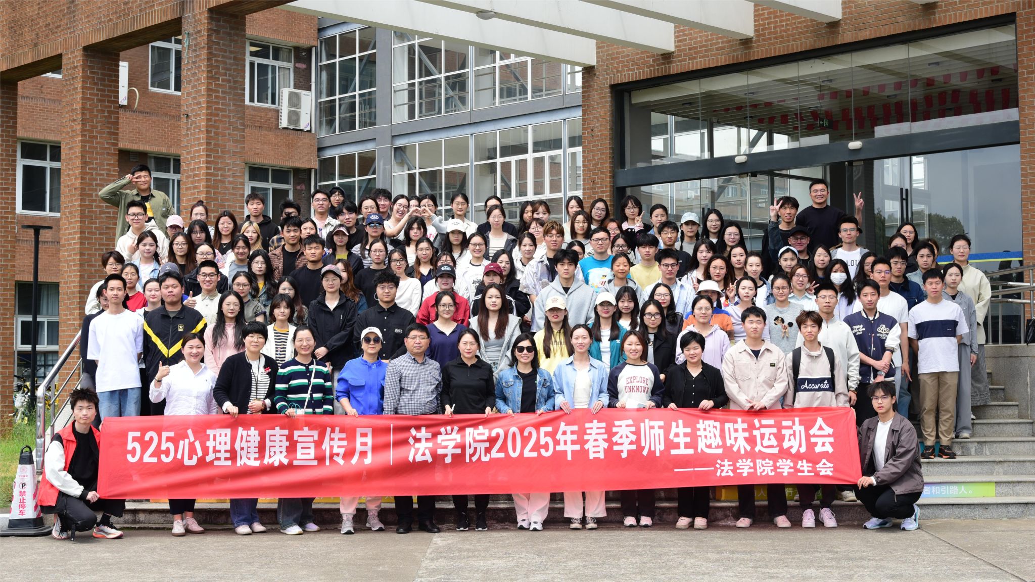 "法young春日•趣向未来"师生趣味运动会在欢声笑语中圆满落幕。作为学院525心理健康宣传月的重要活动之一,本次运动会以"运动赋能心理健康"为主题,设置法智接力赛、八人九足、集体跳大绳、同心协力运球四大特色项目,吸引了14支参赛队伍、138名师生热情参与。