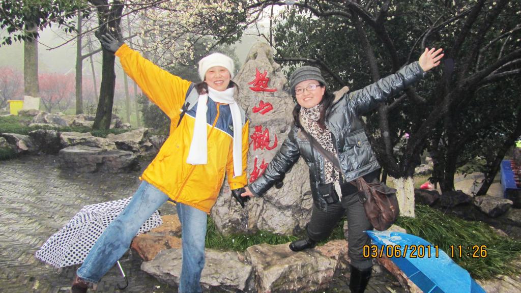 经过二个多小时的行程,女教师们来到了风光绮丽、古迹众多的超山赏梅,恰逢超山梅花的最佳观赏期。梅花已经开了五成以上,层林尽染,清香扑鼻,当年吴昌硕先生笔下“十里梅花香雪海”的胜景依稀可见。尽管天公不作美,行程中霏霏细雨一路相伴,但美丽的女教工们依然兴致不减,戏称做了一次“梅花浴”。大家尽情地在花丛中漫步、谈笑、留影,还跟随着导游探访了唐梅、宋梅二大古梅。下午,大家来到了享有“杭州北秀明珠”的塘栖古镇,跨过京杭大运河上唯一保存完整的七孔石桥----广济桥,撑一把细花伞漫步在熙攘的古镇街头,感受烟雨濛濛的江南水乡美景,恍若时光倒流。