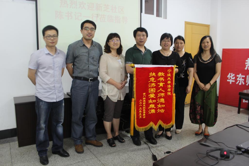 6月5日下午14点,海曙新芝社区陈珊霞书记将写有“教学育人师德如烛,扶危救困爱如泉涌”的锦旗送到抖阴