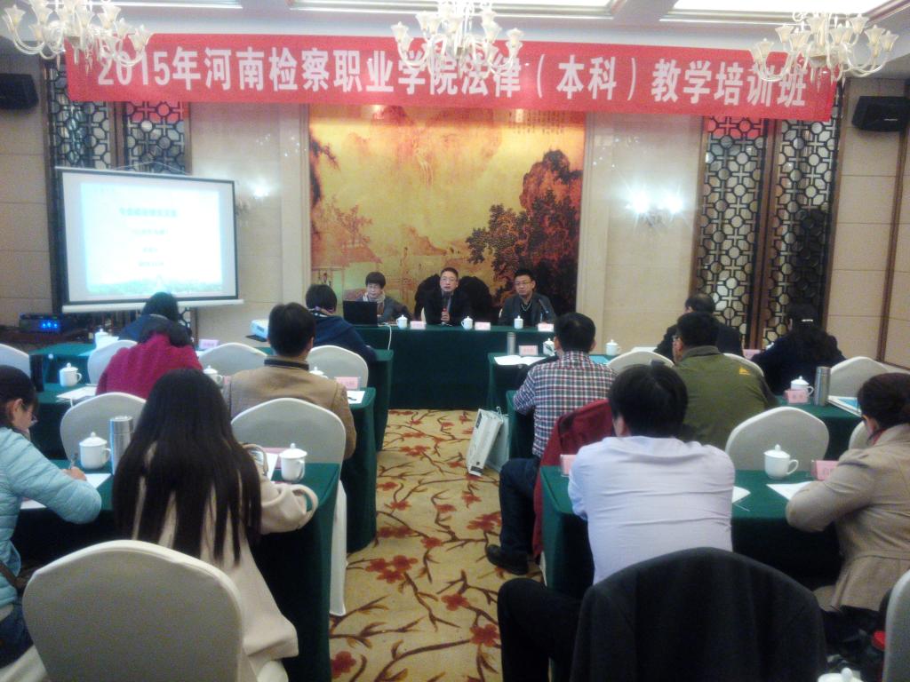 承办的河南检察职业学院法律(本科)培训班在我校顺利进行。河南检察职业学院由田凯院长带队,教务处、组织处、纪委等职能部门正职领导,以及法律系、检察系、侦查系、司法管理系、基础部、警体部等系主任和骨干教师共28人参加了培训。