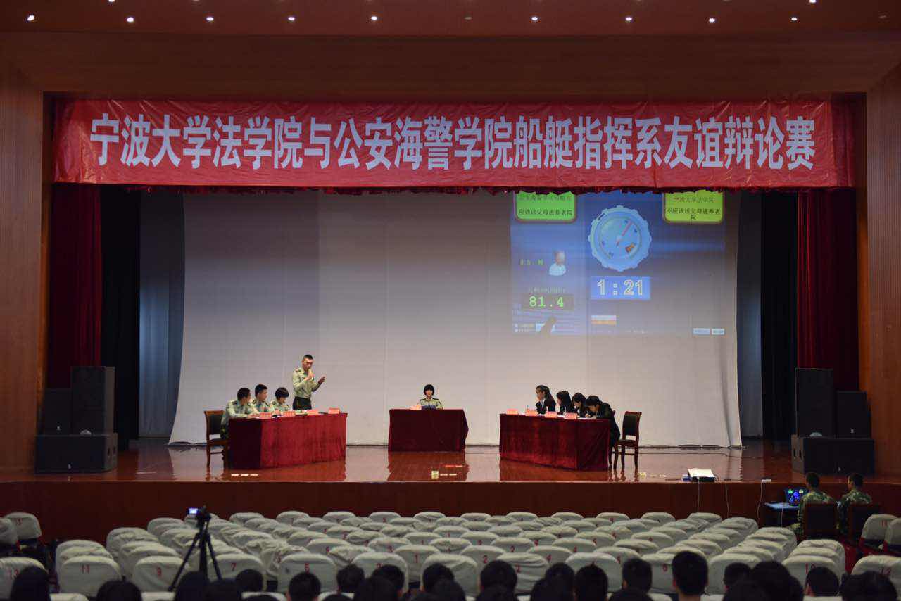 辩论队代表与海警学院船艇指挥系辩论队代表就“是否应该赞成送父母去养老院”进行了一场风趣幽默又不乏激情辨理的辩论,赢得在场观众的阵阵掌声。