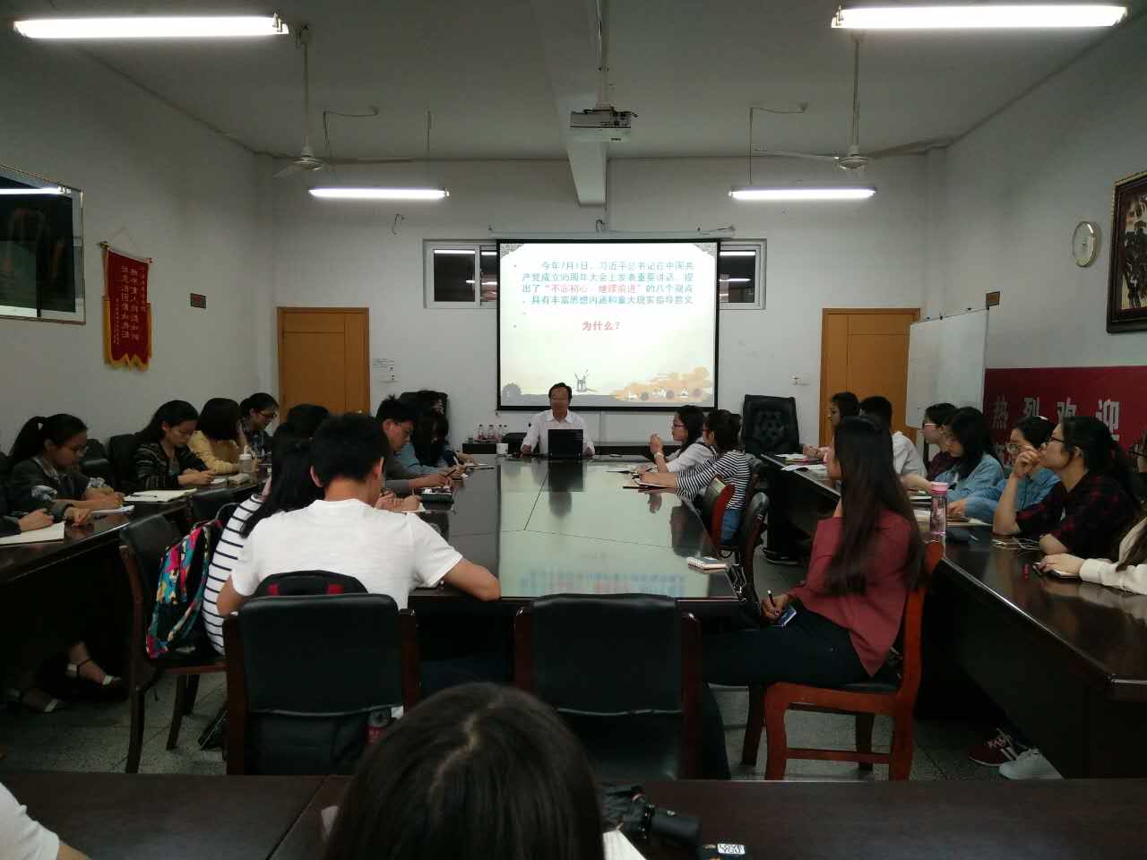 郑书记从习近平主席的系列讲话入手,详细向同学们介绍了中国共产党“不忘初心,继续前进”的8个观点和努力方向,揭示了在新时期背景下中国共产党依然保持着高度的先进性,带领中国人民和中华民族走向伟大复兴。同时,郑书记也指出中国共产党和中共党员们要带领人民走“继续前进”的道路,必须坚持党的指导思想,牢记理想信念,坚持“四个自信”,推进“五位一体”和“四个全面”战略布局。