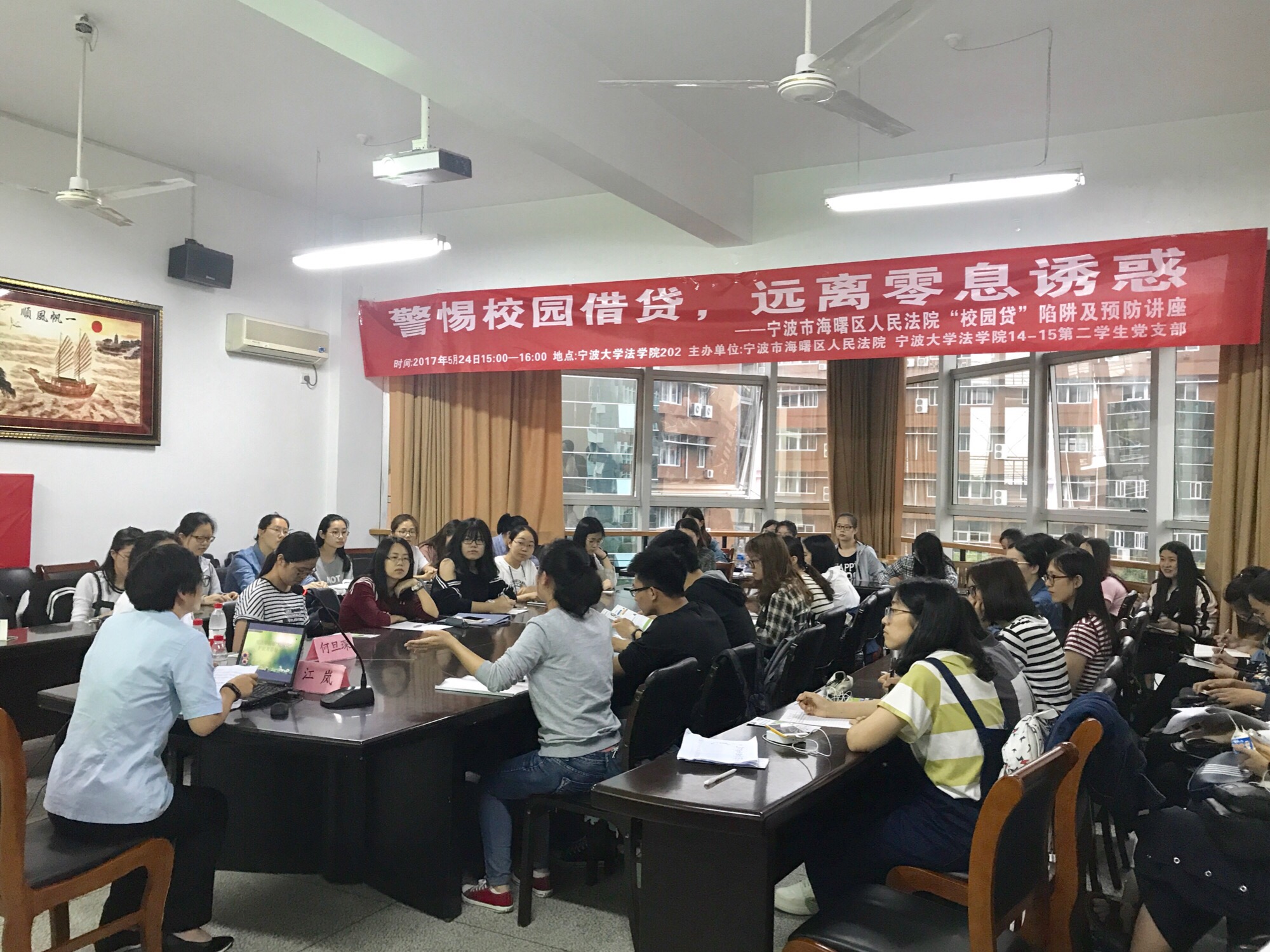 14-15第二学生党支部与宁波市海曙区人民法院主办的“校园贷”陷阱及预防讲座在抖阴