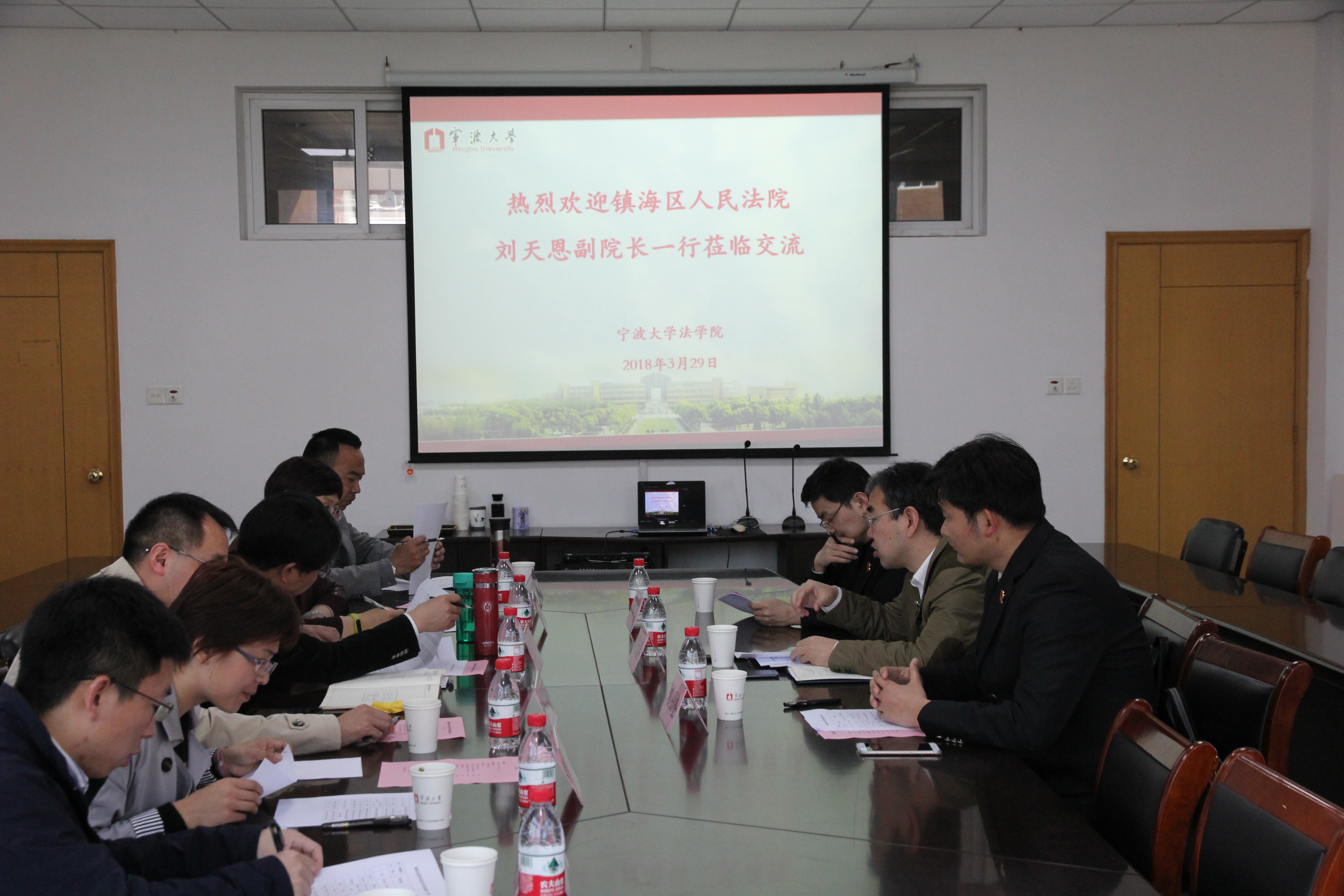 3月29日上午,镇海区人民法院刘天恩副院长、研究室调研干部刘明奎、李国勇等一行莅临我院交流。抖阴
