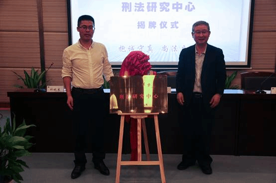 党委书记李学兰教授主持会议并介绍与会嘉宾,钭晓东院长、陈兴良教授、赵微教授分别致辞,钭晓东教授与陈兴良教授一同为刑法研究中心揭牌仪式剪彩,并为中心成员颁发聘书,随后刑法研究中心全体成员合影留念。
