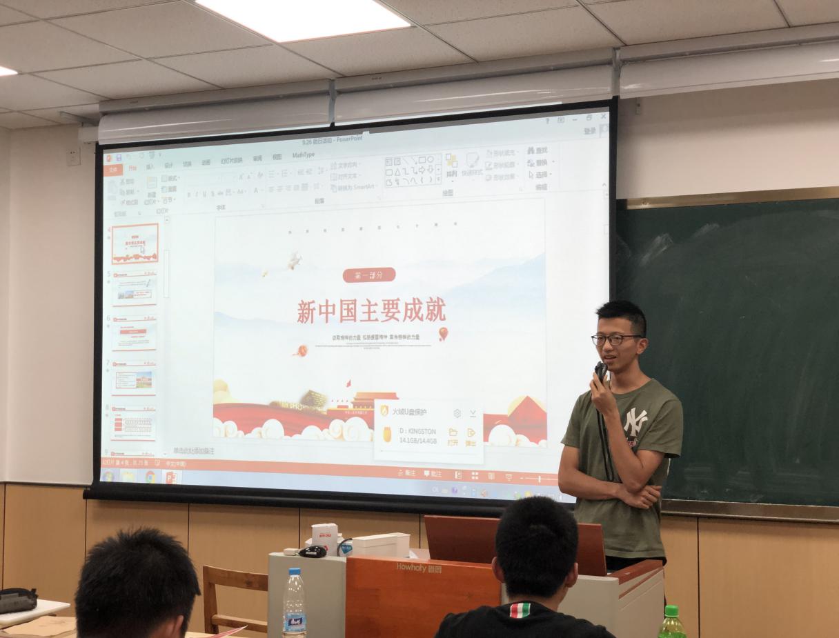 (图为由班团支书介绍新中国主要成就)