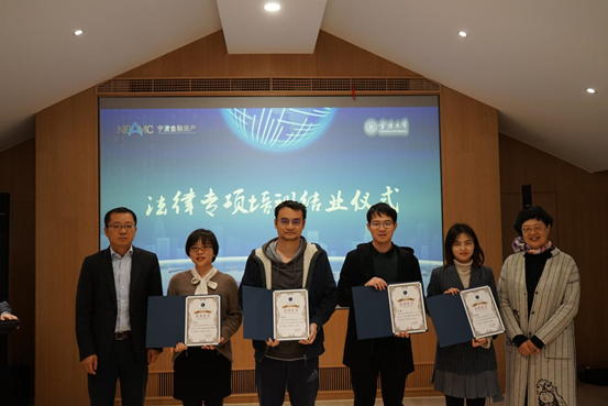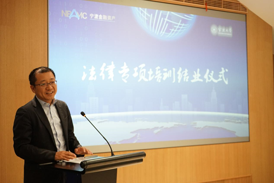 受托宁波金融资产管理公司举办的地方金融资产管理专项法律研修班举行了结业仪式。我院书记李学兰、教授赵意奋,宁波金融资产管理公司董事长卢冲、风险总监张庆以及受训的各部门员工参加了仪式。结业仪式由张庆总监主持,赵意奋就本次培训班做了总结,两位优秀学员代表发表了培训感言,最后我院李学兰书记和宁波金融资产管理公司董事长卢冲发表讲话。
