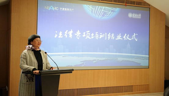 我院李学兰书记在结业仪式上发表讲话。李书记首先感谢宁波金融资产管理公司对于我院的信任,正是这次信任,给予我们一次承办如此高水平的法律专项培训的机会;她表示,事实证明,我院没有辜负信赖,圆满地完成了受托任务。李书记最后指出,我院与宁波金融资产管理的合作是第一次,也是一个非常好的开端;她表示希望能够在人才培养、地方服务等各个方面继续与宁波金融管理公司合作,能够让宁大抖阴