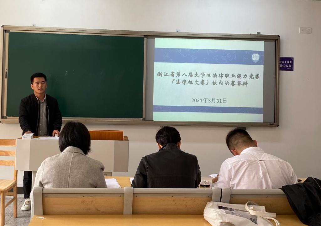 承办的浙江省第八届大学生法律职业能力竞赛征文类竞赛校内选拔赛决赛在8号教学楼举行,本次选拔赛分为A、B、C、D、E五组,五个分会场同时进行。抖阴