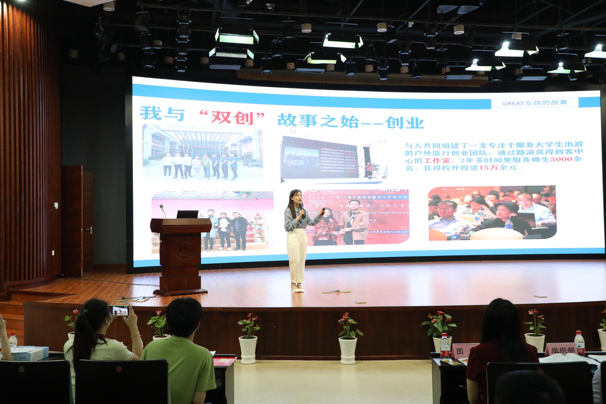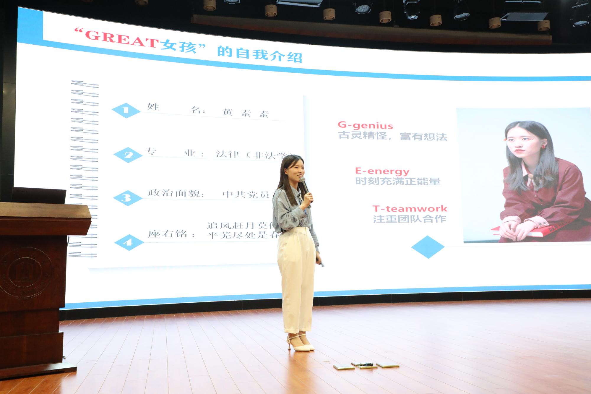 经前期推荐,我院2019级法律(非法学)研究生黄素素同学入围现场答辩评审。这位“GREAT”女孩,从自己的两段“双创”经历出发,与现场师生一同分享了研究生期间在校园文化活动、学生干部经历、实习实践、科研创新等领域的探索与收获。自信有力、亲和且富有感染力的展示赢得评委和现场师生的高度认可,最终入选获评抖阴