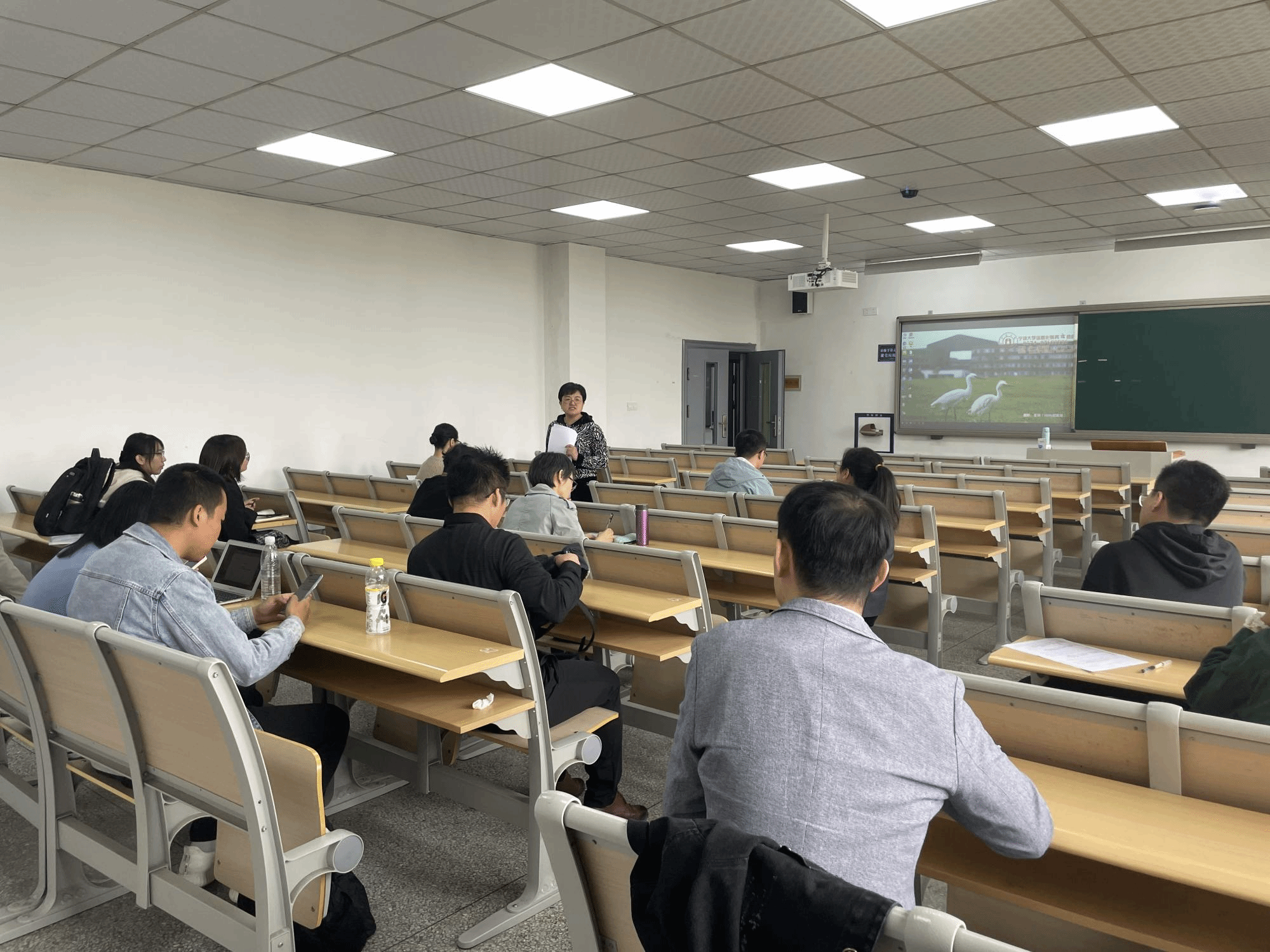 课后在同一教室进行了公开课研讨活动,由学院本科教育督导主任蒲一苇教授主持。研讨会上,各位老师就合理使用PPT辅助教学、突出授课重点、增强课堂互动、在讲课过程中增加课程思政内容等方面的问题开展了讨论,并提出了有益的建议。