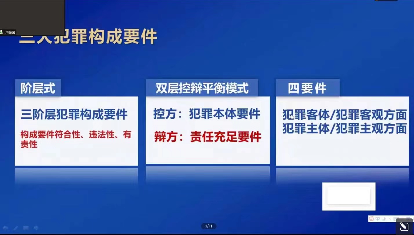 1月4日晚,研究生法治实务课程系列讲座《从出罪的视野看三大犯罪构成要件》在线上会议顺利举行。讲座由浙江省宁波市中级人民法院四级高级法官尹振国主讲,由抖阴