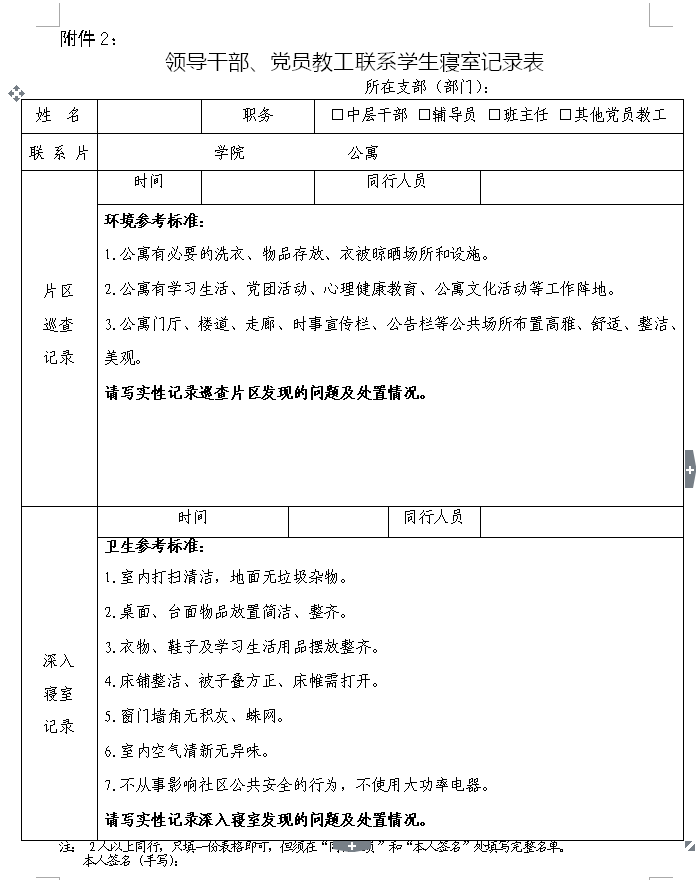 领导干部、党员教工联系学生寝室记录表.docx