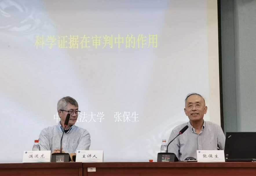 讲座伊始,张保生教授从辨认、鉴真与鉴定的区别入手,讲述了科学证据的可采性标准、弗赖伊案确立的“普遍接受性标准”以及多伯特案对于规则702的补充和完善。接着,张保龙教授又从科学证据的相关性,科学原理和方法的可靠性,科学推论的正确性,检材的同一性、充足性和未被污染,当事人对鉴定意见是否有异议,科学证据的危险性是否实质上超过其证明力等方面展开讲述了科学证据可采性的审查内容。然后,张保生教授围绕“证据法如何对科学证据进行规制”“中国刑事专家辅助人向专家证人演变的意义和问题”这两方面展开讨论。张保龙教授认为科学证据是一把“双刃剑”,一方面减少了很多冤假错案、一方面也制造了很多冤假错案。最后,张保生教授阐述了当前证据法研究前沿问题以及在中国实践中出现的实际问题。