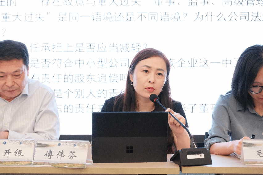 与谈人傅伟芬法官首先发言,她指出,董事未履行催缴义务而承担责任的法律依据及实践中存在的问题已成为司法实践中的争议焦点。特别是董事对公司所负的忠实、勤勉义务如何转化为公司债权人的赔偿请求权、董事责任的承担形式及承担责任的范围等问题,引发了广泛讨论。傅法官还提到了股东出资责任的加速到期问题,以及新公司法下未届期股权转让的责任承担规则及其裁判展望等。傅伟芬法官强调,转让人承担受让人未按期足额缴纳出资时的补充赔偿责任问题也引起了广泛关注。此外,她还探讨了在认缴制度下,发起人是否应对其他股东未按期足额缴纳出资承担连带责任问题,以及转让人承担补充赔偿责任后是否有权向其他股东追偿的问题。在发言的最后,傅法官提出了多个债权人同时起诉时的处理问题,以及不同法院管辖权差异所带来的挑战。这些问题的探讨对于理解和应用新修订的《公司法》具有重要意义,为法律实务界提供了宝贵的洞见。