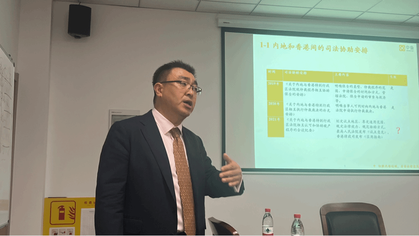 吕凯律师是香港注册外地律师、中国执业律师(香港居民)、中伦律师事务所高级中国业务经理。围绕香港的法律程序与实践操作,吕律师详细讲解了香港与内地法律程序在司法协助、保全制度和判决执行上的差异与联系。吕律师详细分析了两地之间司法协助安排所要解决的问题与实践做法,香港的两项重要保全制度即玛瑞瓦禁令和容许查察令,以及香港法院判决执行制度中的执行事务组、公开查册、执行令状等内容。在讲解的过程中,吕律师还特别联系了自己丰富的职业经历,对相关实务问题进行了宝贵的经验分享。在答疑环节,吕律师对于同学们提出的问题给予了精辟细致的解答。