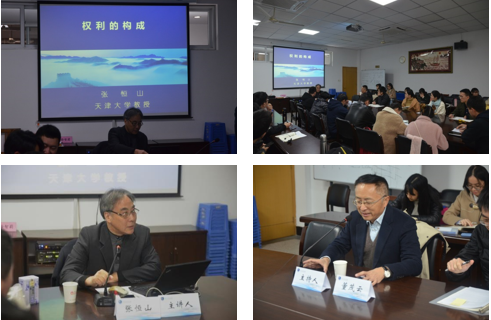 讲座主要围绕“权利的构成”这一主题而展开。讲座伊始张教授就向同学们介绍了权利一词的由来以及它在我们实际生活中存在的意义。张教授向同学们介绍了权利一词在各种学说之间概念上的差别,并用一个个生动有趣的例子帮助在场的同学们理解其中的含义。